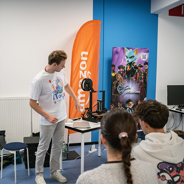 Bei der Tour zu Amazon drehte sich alles um moderne Technologien: Die teilnehmenden Jugendlichen durchliefen interaktive Stationen zu IoT, Robotics, Green Cloud und Künstlicher Intelligenz und lernten deren Einsatzmöglichkeiten in der Arbeitswelt kennen. Darüber hinaus hatten die Jugendlichen die Gelegenheit mit Experten in den Austausch zu gehen, die ihre Berufserfahrungen teilten. Ein besonderer Höhepunkt der Tour war die Teilnahme am Tangible World Cup im Rahmen des offiziellen Think Big Circle Launch — ein globaler Coding-Wettbewerb, der von Amazon unterstützt wird und Jugendliche weltweit verbindet.